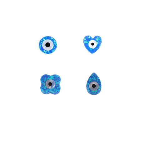 5 मिमी-14 मिमी प्रयोगशाला ने 1.1 मिमी छेद के साथ पॉलिश किए गए गोल बुराई आंखों के नीले ओपल रत्न