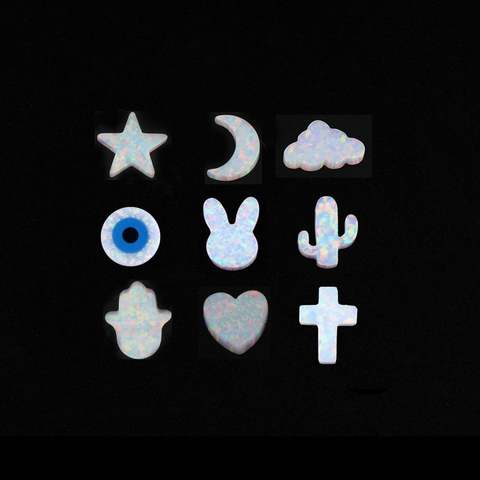 MOQ 1ピースOP17ホワイトカラームーンスタークラウドハートハムサクロス合成オパールストーン穴付き